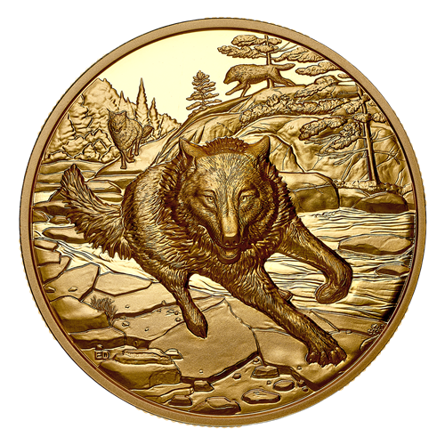 Great Hunters: Grey Wolf – 1 oz. Pure Gold Ultra High Relief Coin